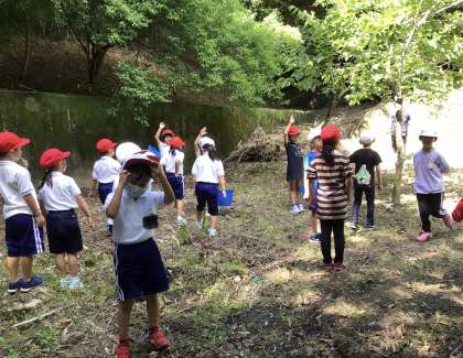 高学年が水泳授業をしている横で1、2年生の歓声が聞こえます。