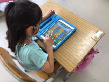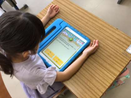算数に時間にタブレットのアプリを使って、計算の練習をしました。