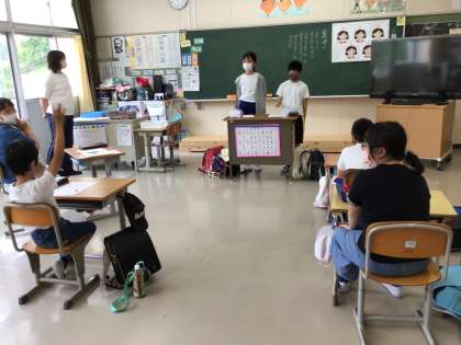4、5、6年生のリーダーとしての活躍を応援して今年から設定しています。今日は来月に予定している縦割り班の室内遊びの計画をしました。みんなが笑顔になるように、明るい気持ちでできるように、というめあてをそれぞれ確かめ、ぴったりの遊びを決めました。折り紙よりもフルーツバスケットというように、子供たちは、意見を交流することができました。高学年の皆さん、ありがとう。