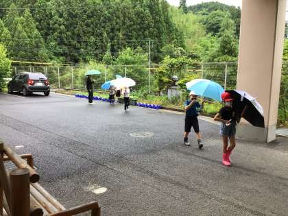 2年生は雨の中、野菜の観察に出かけていました。戻ってくるなり、このくらいのきゅうりができてたよ!と身振り手振りで伝えてくれました。私はまだ、と残念そうな子も。これからも大きくなっていく姿を見ていこうね。