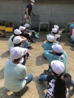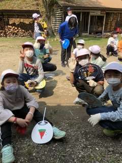 野外炊事の説明前。いち早く整列して、みんなを待ちました。チームワークがいいね。