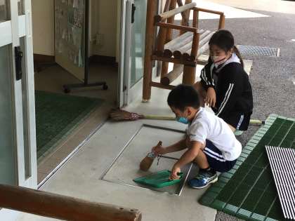 今年から異学年での縦割り清掃を実施しています。上学年のお姉さん、お兄さんが下学年の子たちに親切に関わる様子があちこちで見られます。ますます温かいつながりが続いていきます。