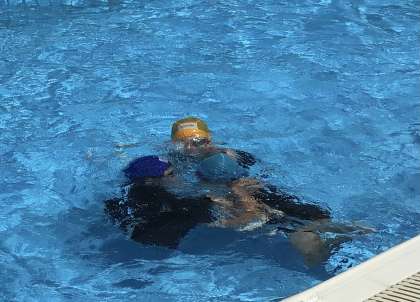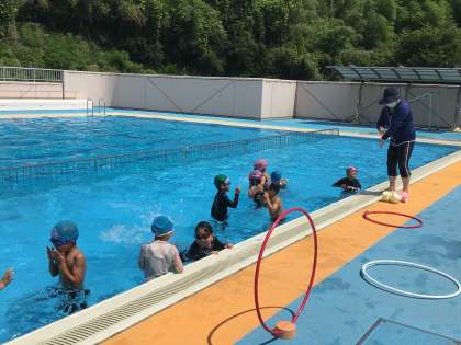 今日は暑さ指数が高かったので、テント下で15分おきに休憩と給水をする形で水泳指導を行いました。水の中は気持ちよさそうですが、基準に沿って、気温や水温、暑さ指数の数値に合わせ、実施を決定しています。これから入れない日も増えてくるかもしれません。