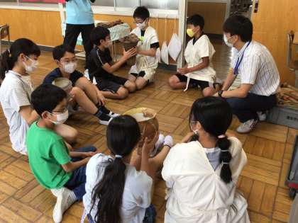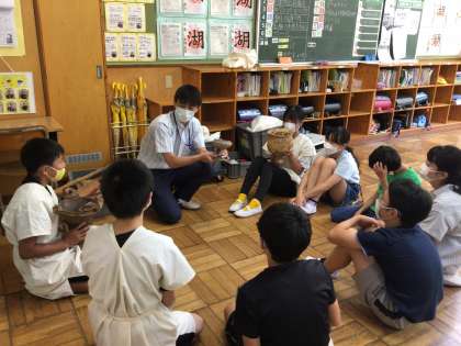 今日は郷土資料館の職員の方が来校し、体験学習を行いました。