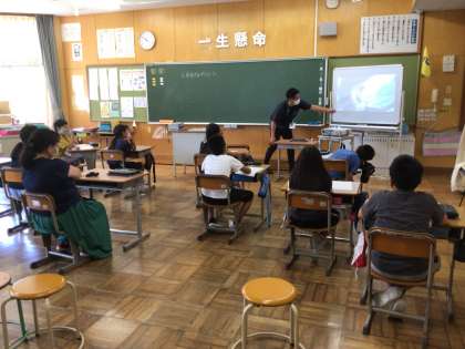 水泳授業に備え、動画で泳ぎ方の復習をしました。腕の形をじっくりと観察して真似してみましたね。明日の水泳授業は暑さに備え、午後から1時間目に移して実施する予定です。