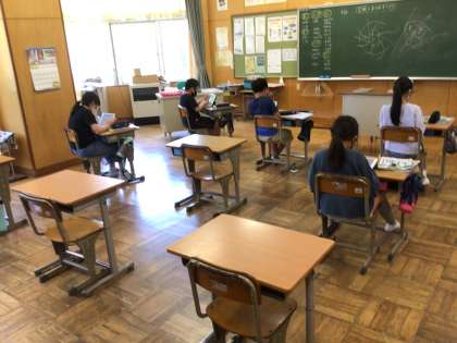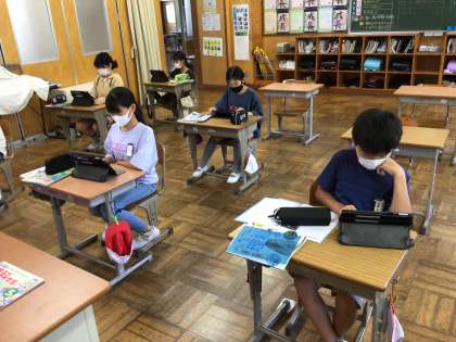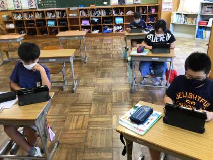 学習タブレットのデジタルドリル(Qubena)を使って、台風の練習問題を解きました。