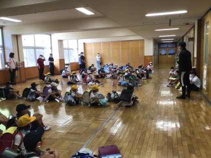 下校では、ここ数日の暑さで熱中症にならないように、生活指導の先生からお話がありました。おうちに帰ったら、今日は特別な方法で体を冷やしてください、と帰宅後の過ごし方についてもアドバイスがありました。氷で冷やす方法では、首や脇などがいいようです。