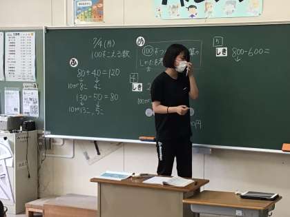 100をこえる数の足し算や引き算の問題を解きました。