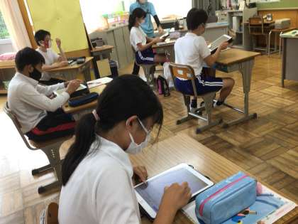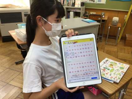 学習タブレットにある美文字というアプリで美しい文字を極めていた6年生。これが結構難しく、わずかな角度でも残念マークが出てしまいます。何十回と同じ文字に挑戦する子もいました。そんな中で、かなりの高得点発見!拍手!