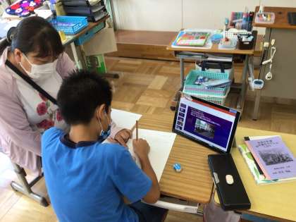 タブレットのパワーポイントを使って、キャンプのまとめを作りました。