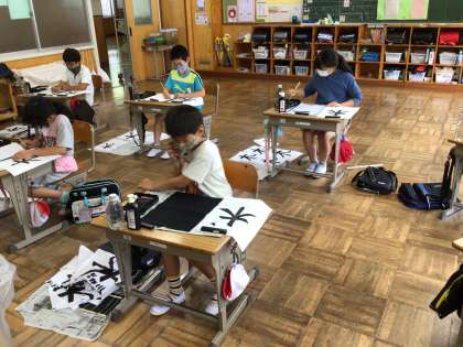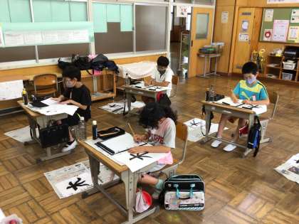 毛筆で「木」の練習をしました。右はらいと左はらいの練習をしました。