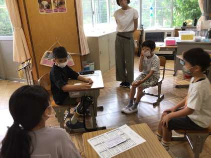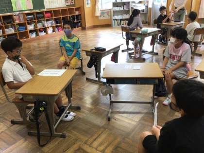 今日は3年生と4年生にお邪魔しました。聴き名人のめあては、お友達の話に反応して聴く。ああ、いいね、うんうん、え!おお、といったように、アイウエオの反応言葉を使って聴いてみます。伝え名人のめあては、理由をつけて伝える。なぜ、その言葉を選んだのか伝わるように話します。好きな色を緑と選んだ子は、自然が好きだからです。と伝えていました。さすが緑豊かな環境で育った幸海っ子。
