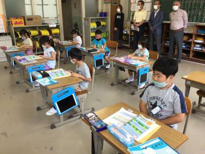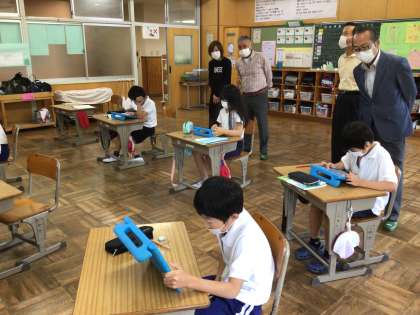 年に2回。幸海小学校では、学校アドバイザーさんをお招きし、教育協議会を開いています。子供たちの学校や地域での様子を見ていただき、アドバイスをいただくものです。