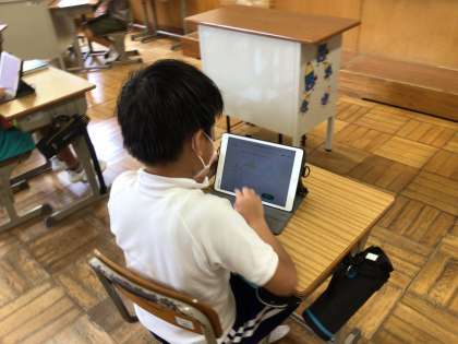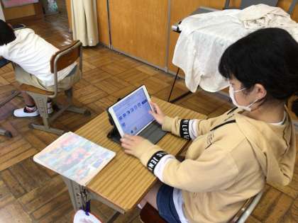 合同な三角形の問題をタブレットのキュビナを使って、復習しました。
