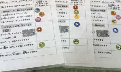 最近は子供たちの成長を楽しみに講師の先生が毎回ご指導に来てくださっています。個人カードにはたくさんのクリアーシールが貼られています。