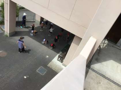 見ると、1年生のみんなが水着を着たまま、手に手に、丸い輪っかのお手製シャボン玉作りの道具を持っていました。いつもわくわくすることを楽しんでいる1年生。近くで写真が撮れずにごめんなさい。代わりにたくさんみんなからお話してくださいね。