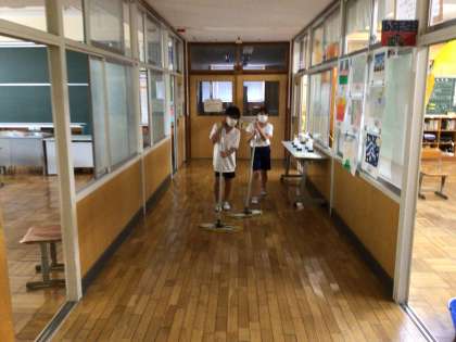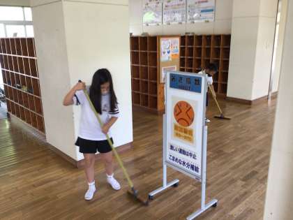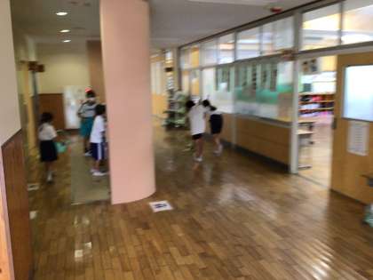 縦割り清掃をとてもがんばってやっています。高学年のお兄さんお姉さんが優しく低学年の子に教えている姿がありました。