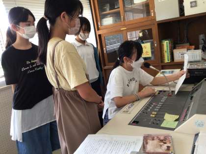 明日のチーム対抗草取り大会2の連絡を放送で告知する子供たち。前回の経験をもとに成功体験を積んでいきます。