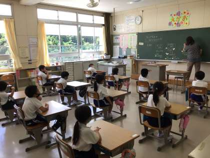 一年生は生活科でアサガオの様子について学習中でした。明日はアサガオを使った色水遊びをするようです。楽しみですね。