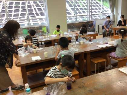 どの子も満足げに出来上がったアサガオジュースを見せてくれました。