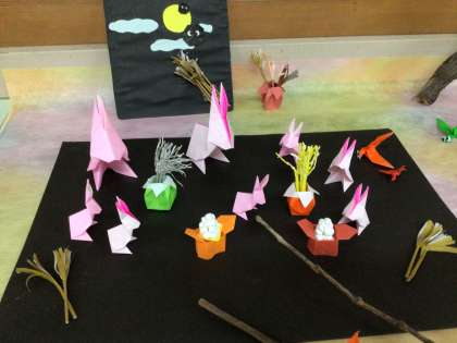玄関には、公務手さんお手製の折り紙、お月見コーナーもあります。