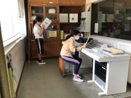 委員会活動で、お昼の放送を担当する子達がいます。いつも明瞭な声でアナウンスをしてくれているのですが、放送開始まで何度も何度も放送原稿を読み、繰り返し練習をしていました。立派ですね。だからこそ、あのような、わかりやすいお昼の放送になるのですね。