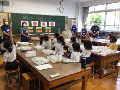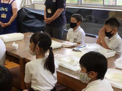 振り返りで学習の感想を伝えると、いよいよ賞の発表です。お祈りする子もいました。賞に輝いた子にはみんなで拍手。一生懸命に頑張ったから、もらえなかった子はちょっと悔しいね。でも、こういう気持ちも大切だね。ものづくりサポーターの皆さん、今日は半日、ありがとうございました。