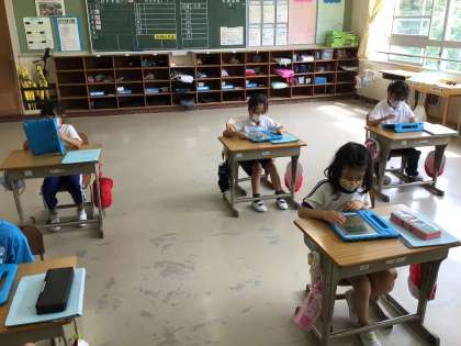 タブレットを使って、筆算のたし算、引き算の復習をしました。