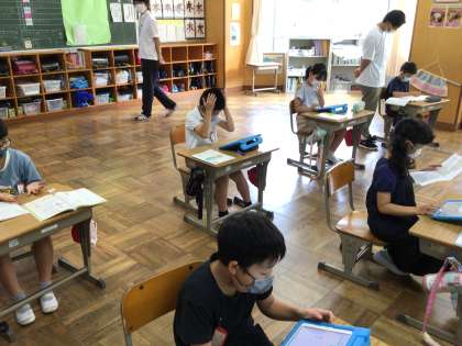 筆算の練習問題をタブレットのキュビナで行いました。