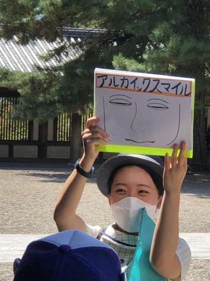 ガイドさんの説明にあった、アルカイックスマイルをまねする子供たち。本物のスマイル、見られたかな。