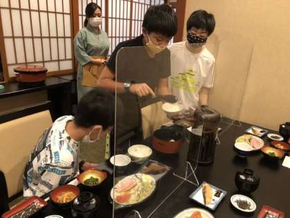 健康観察では、全員、体調ばっちりです。しっかり栄養補給して出発します。