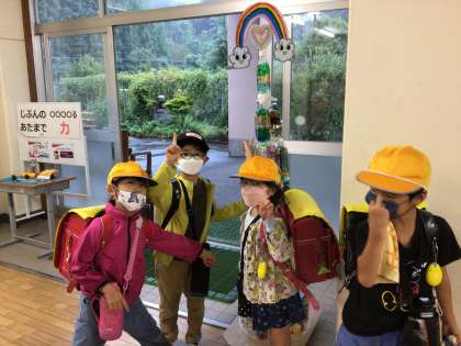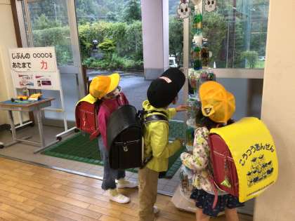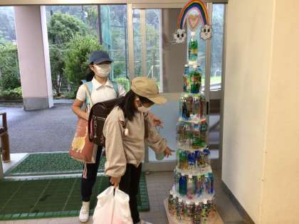 ペットボトルで作成した光のタワーが出来上がりました。テーマは「未来の幸海」それぞれの想いの詰まった絵が描かれています。今朝、教頭先生と一緒に昇降口に展示すると、登校してきた子供たちが早速、自分の作品を指さして伝えてくれました。ありがとう。10月2日の交流館祭に展示されます。お時間のある方は、ぜひ足をお運びください。