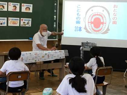 今日は歯科医の先生に来ていただき、歯を大切にするための出前授業がありました。