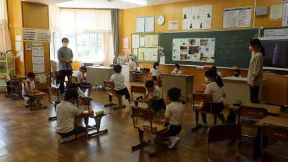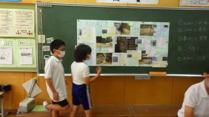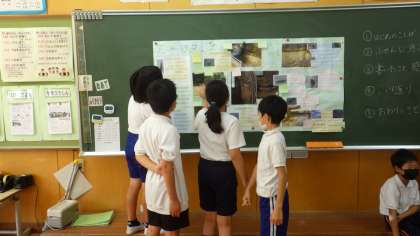 4年生が総合で調べた水生生物の発表を3年生が聞きました。