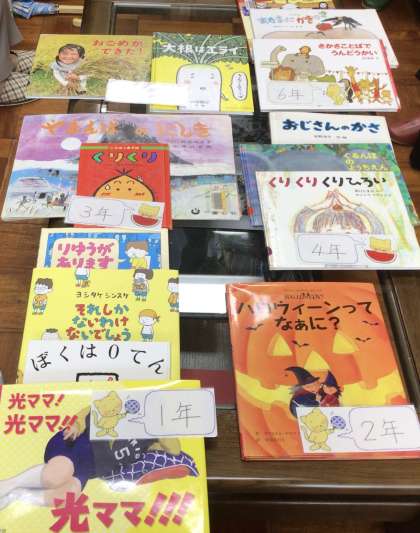 今日は一ヶ月に一回、楽しみな読み語りの日。ボランティアグループひまわりさんが、選りすぐりの本を選んできてくれました。ありがとうございます。