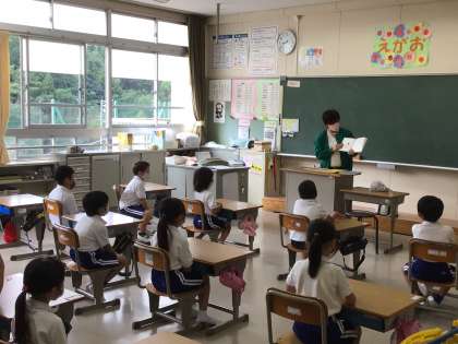 どの教室でもみんな一冊の絵本を見入っています。