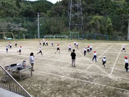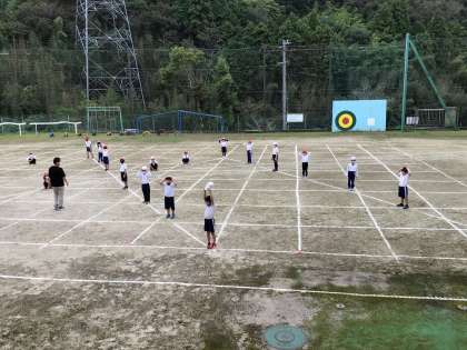 低学年が運動会の練習を運動場で行いました。
