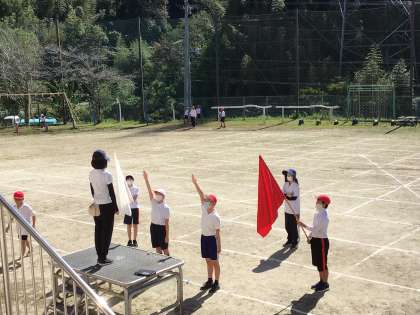 全校練習後、赤白、そrぞれの応援団長を中心に開会式の練習がありました。疲れていたでしょうが、一生懸命な宣誓の姿に思わず拍手をしました。みんなの代表として、よろしくお願いします。