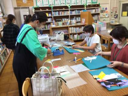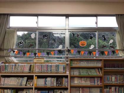 昨日は図書館ボランティアのクローバーさんが図書館の飾り付けに来てくださいました。季節にあった飾りで楽しくなります。今日は早速3年生の子供たちが本を借りにきました。来週は親子読書があります。お気に入りの本が見つかるといいね。おうちの人に紹介できるといいね。