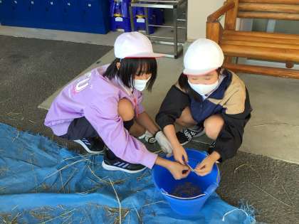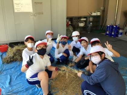 10/18 5年社会科 脱穀を手作業で体験