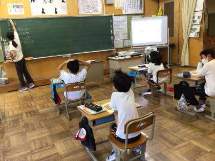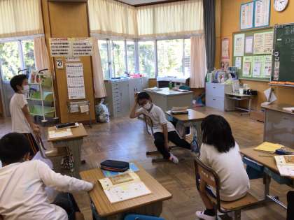 面積とは?と課題を出された子供たち。気軽に発言できるところが名人タイムの成果ですね。