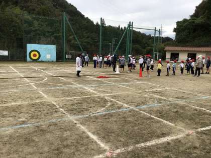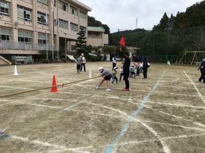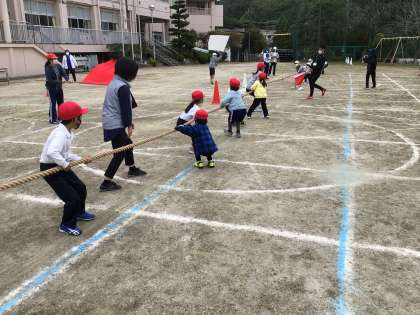 全校で綱引きの練習をしました。
