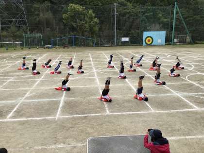 4、5、6年生が、競遊とソーラン節の練習をしました。