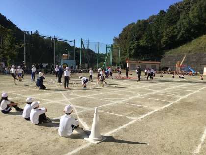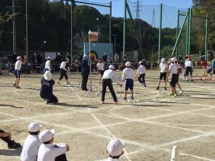 みんな元気いっぱい玉を投げました。高学年は、15-19で、白が勝ちました。総合結果は、1-2で白が勝ちました。