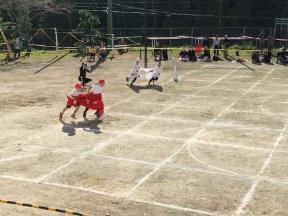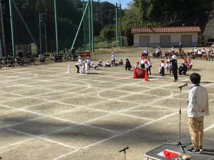 低学年の競遊が始まりました。赤組が勝ちました。