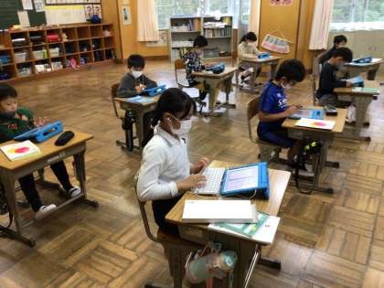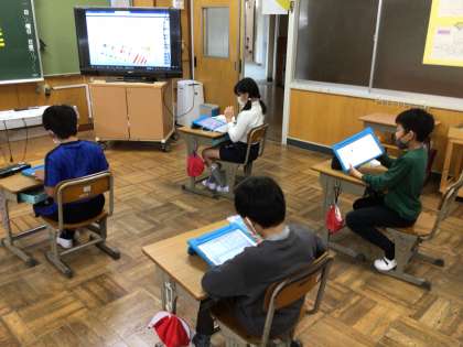 タブレットを使って、パラリンピックについて調べ、リーフレットにまとめました。そのリーフレットを1つのパワーポイントに貼り付け、クラス全員で見あい、コメントを書き込みました。