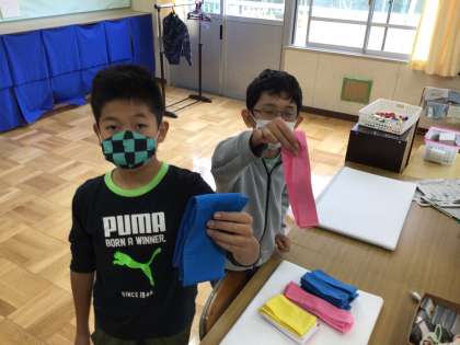 5年生と6年生の2人が運動会の全校リレーで使ったたすき一本一本にアイロンをかけてくれたのです。どのたすきも、ピシッとしていて、とても感心しました。全校のためにありがとう!