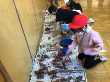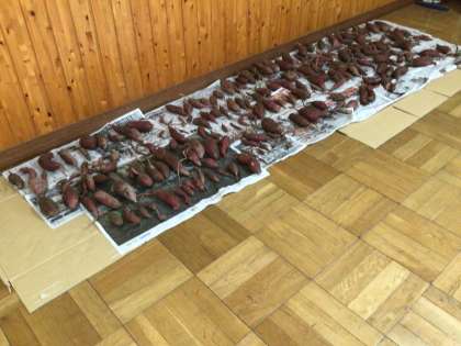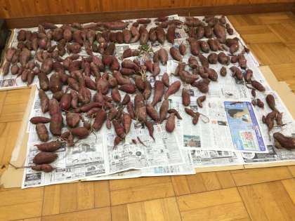 一生懸命に掘ったから、一つ一つのお芋が愛おしくなりますね。とっても小さな赤ちゃん芋も、ちゃんと並べます。