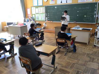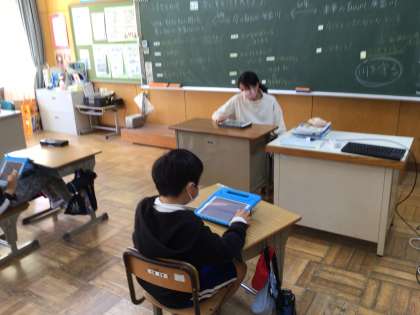 ふるさとの川について話し合いました。振り返りをタブレットを使って、描きました。