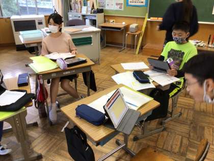 総合学習の発表に向けて、タブレットを使って、パワーポイントや動画の作成を行いました。